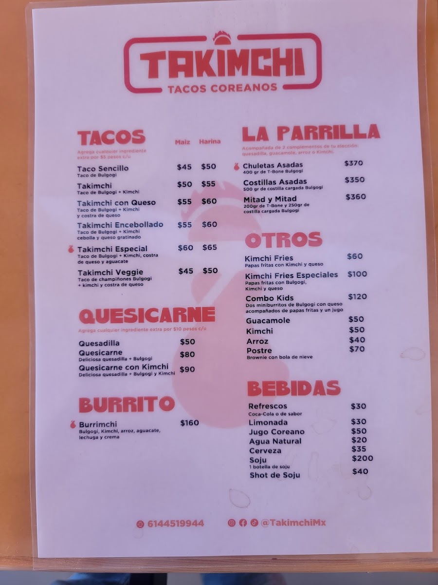 Welcome to Takimchi Taqueria Coreana, a vibrant culinary fusion nestled in Chihuahua, Mexico. With its unique Korean-Mexican twist, the menu promises an unforgettable dining experience.
